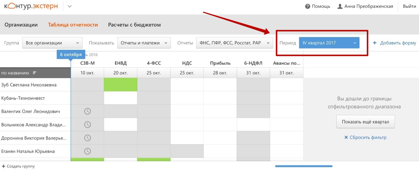 Фильтр отчетов по периодам